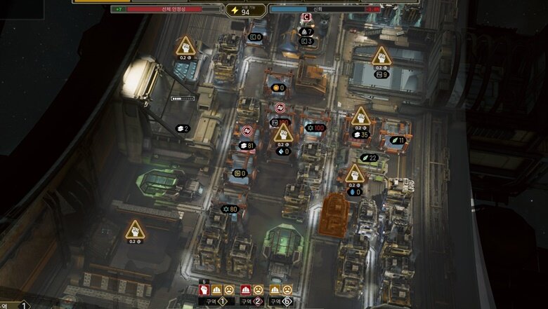 게다가, 게이머가 관리해야 하는 섹터가 6개인 점도 굉장히 까다로운 점입니다. 섹터 별 자원이나 인구 배치 등이 가능하긴 하지만 이를 모두 수동으로 해 줘야 하기 때문에 수시로 인구를 체크해 재배치하고, 자원을 분배해줘야 하는 등 수고가 이만저만이 아닙니다. 더럽게 귀찮은데 이 와중 실수 한 번 했다가 동맥 경화가 오면 최악의 경우 게임을 다시 해야 하는 경우가 생기죠.