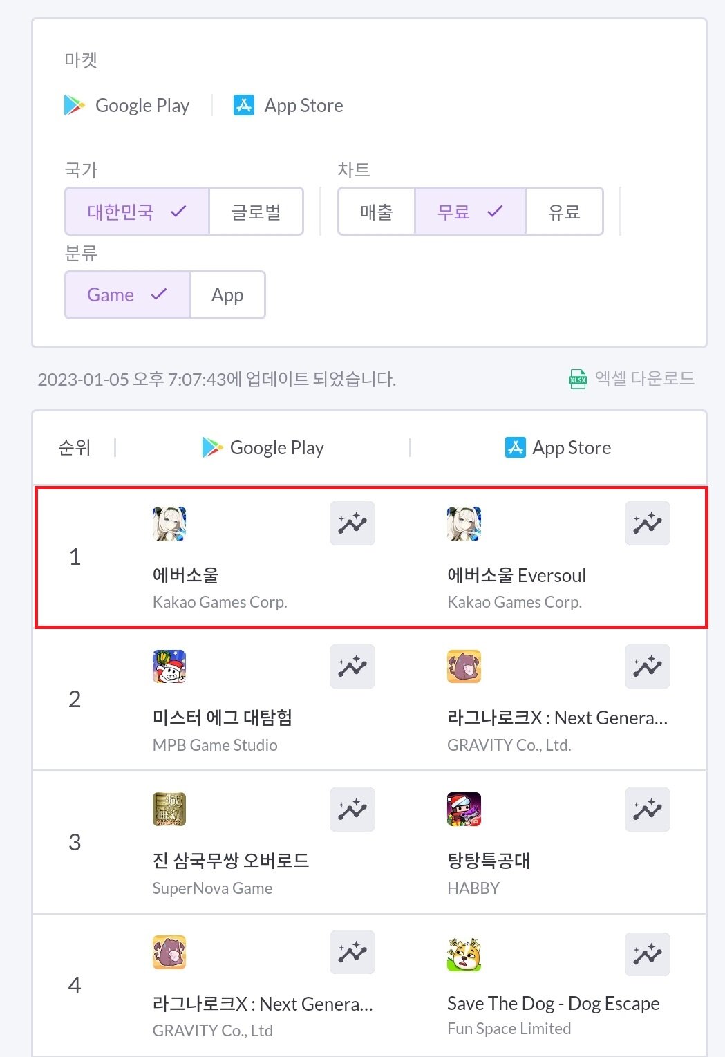 카카오게임즈는 지난 1월 5일 출시된 신작 모바일 게임 ‘에버소울’이 출시 당일 양대 마켓 인기 순위 1위를 기록했다고 밝혔다.