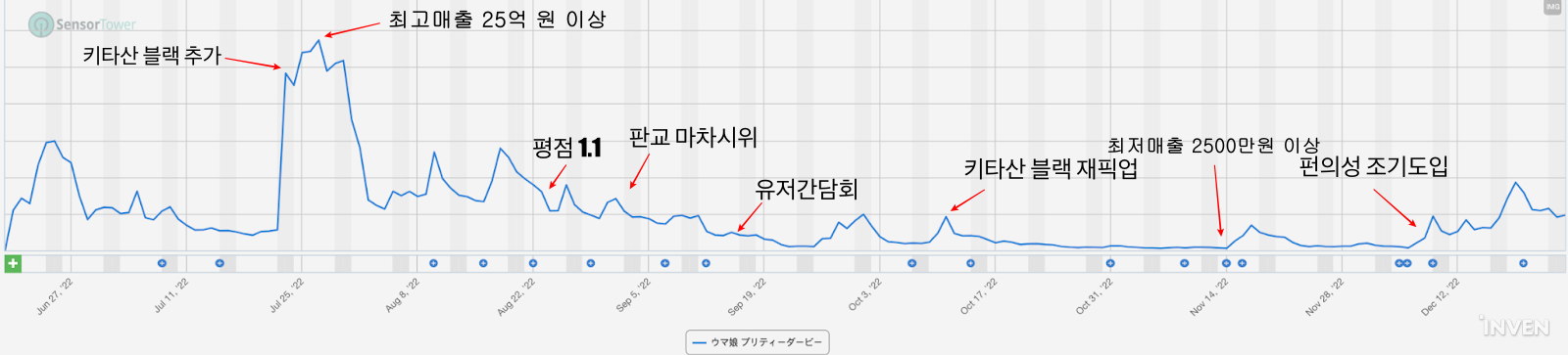 인벤은 센서타워와 함께 ‘우마무스메’ 국내 출시 이후 매출, 이용률을 조사했다. 센서타워는 모바일 데이터 분석 업체다. 센서타워가 제공하는 성과 지표는 신뢰받아 외신 블룸버그, 로이터, 뉴욕타임즈 등이 인용한다.