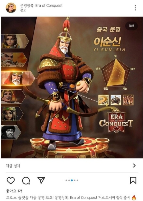 대표적인 예가 ‘중국인이 된 이순신 장군’이다. 중국의 게임 퍼블리셔 4399가 올해 7월 출시한 ‘문명정복: Era of Conquest’에 이순신 장군을 중국 영웅으로 표기하며 많은 비판과 지적을 받았다. 직후 4399는 광고를 중단하고 관련 이미지를 삭제했다.
