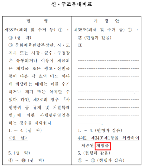 이미 게임 허위ㆍ과장 광고는 게임산업법 제34조 1항에 따라 금지되고 있다. 기존에는 폐쇄 및 수거 대상이 ‘광고물’에 그쳤다. 개정안은 광고물뿐만 아니라 ‘게임물’ 자체를 폐쇄 및 수거할 수 있도록 강화했다.