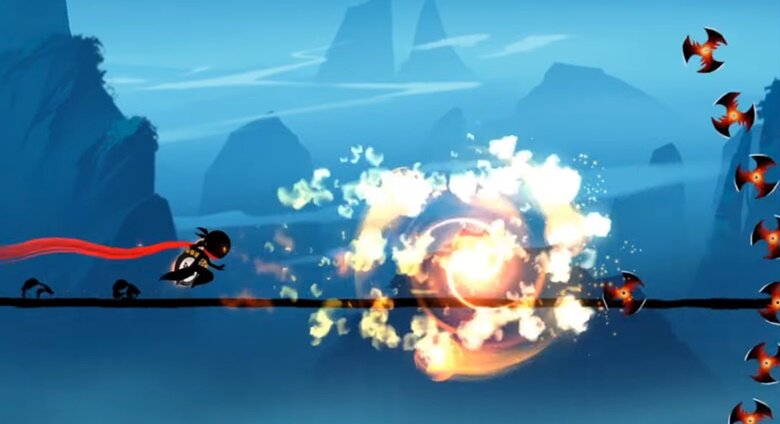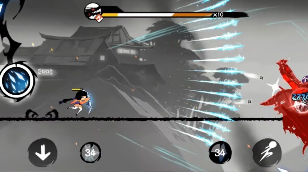 닌자 머스트 다이에서도 이와 같은 디자인은 손쉽게 찾아볼 수 있습니다. 하지만, 이 게임이 다른 러닝 게임들과 다소 다른 점은 러닝 게임이면서도 꽤 박진감 넘치는 전투 시퀀스가 존재한다는 점입니다.