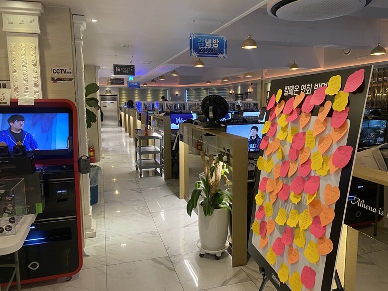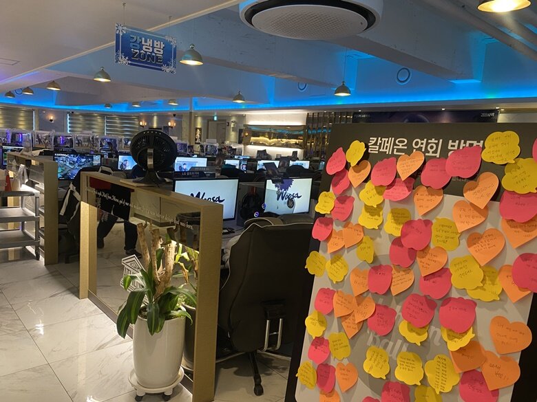 시끌벅적하긴 했지만 내가 알던 PC방의 분위기와는 사뭇 달랐다. 마린이 끄어억하면서 케쳡되는 소리, 하늘에서 정의어억하는 소리, 총알과 수류탄이 얽힌 전장의 소리, 경기 시작을 알리는 휘슬 소리 등 여러 가지 게임들의 소리가 범벅으로 어우러지는 시끄러운 소음의 PC방들과는 달랐다고 해야 될까. 아무래도 검은사막 유저들이 모이는 곳이다 보니 생각보다 분위기 자체는 떠들썩하면서도 PC방 자체는 그리 크게 시끄럽지 않아 차분해지는 느낌이 있었다.