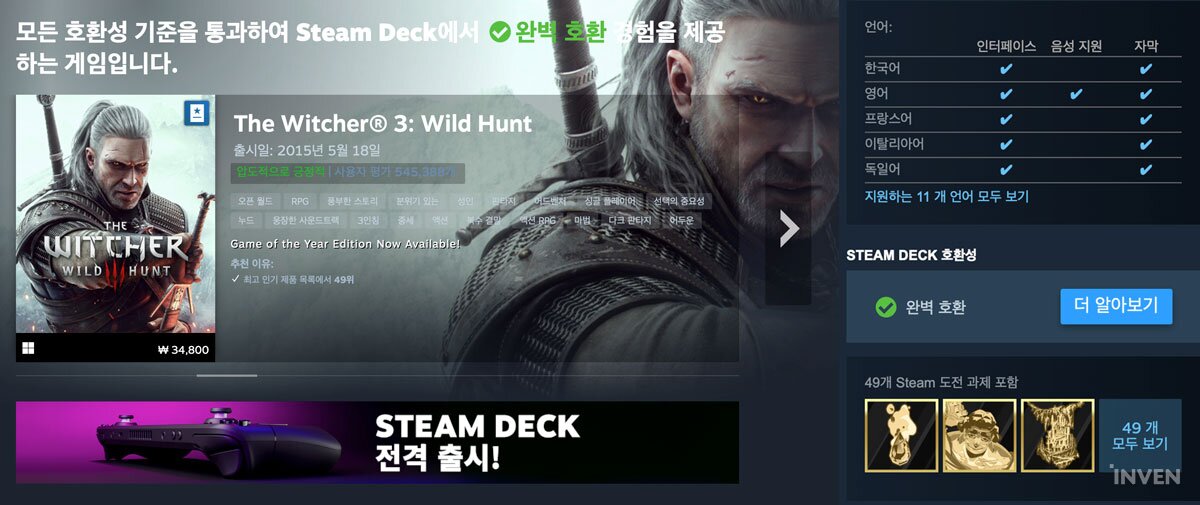또한, 를 통해 스팀 덱의 호환성 역시 빠르게 확인할 수 있다.