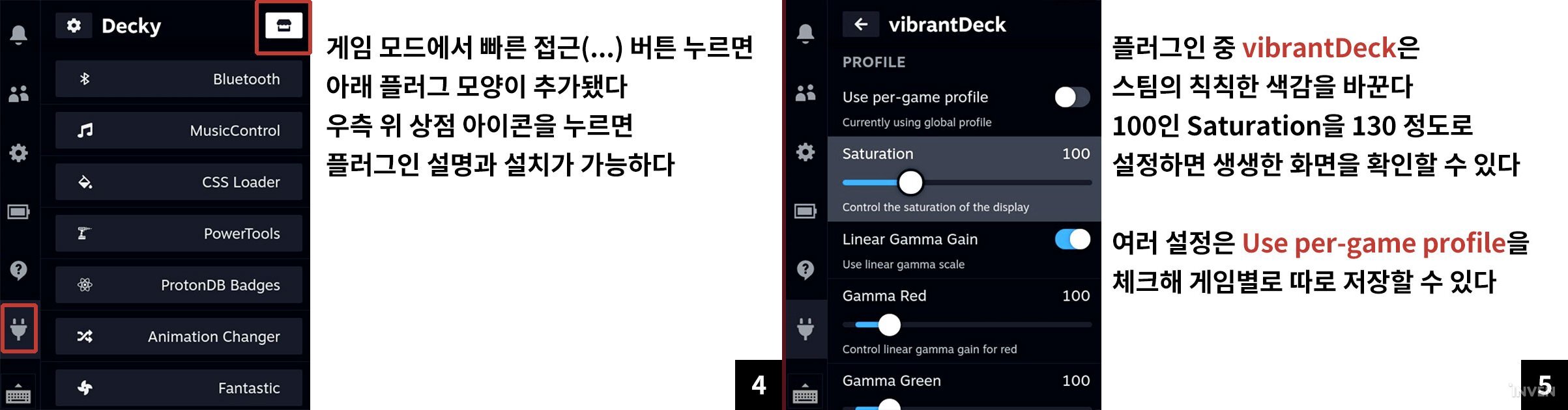 아래는 Decky Loader의 설치 방법이며 칙칙한 스팀 덱의 색을 더욱 화사하게 만들어주는 vibrantDeck 사용법을 통해 설명하고자 한다.