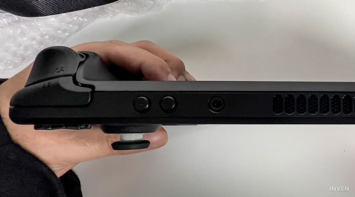 무게 자체가 가볍다는 건 아니다. 스팀 덱은 분명 무거운 기기다. 대신 엄지, 검지, 플레이에 따라서는 중지까지 조작에 쓰이고 남는 손가락들이 무게를 충분히 버틸 수 있도록 그립 부분을 꽤 크게 세웠다. 휴대성을 강조하는 게임기들이 조작부를 평평하게 만드는 것과 달리 손가락을 기댈 공간이 있어 무게감을 덜 느끼고 안정적으로 기기를 들 수 있는 셈이다.