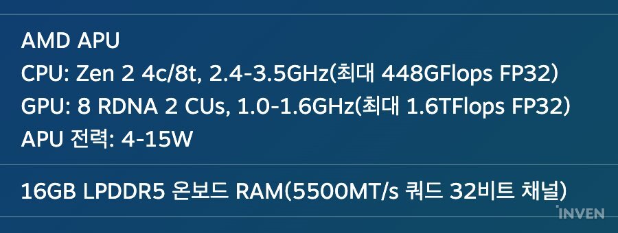 커스터마이징한 프로세서를 구축해 PC, 모바일 프로세서와 부합하는 성능을 이야기하기는 어렵지만, 1.6TFLOPS의 그래픽 성능을 보인다. 차세대 콘솔에 겨우 걸친 Xbox Series S(X가 아니다)가 4TFLOPS 정도니 분명 고사양 게임에 어울리는 성능은 아니다.