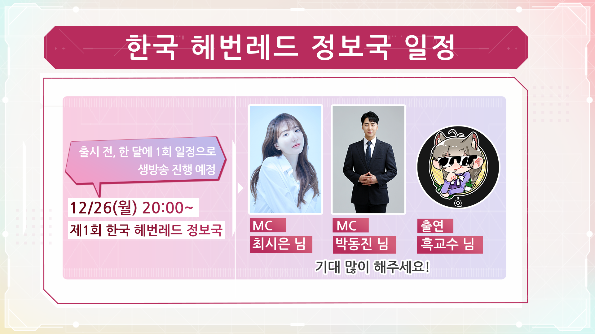 일 시: 2022년 12월 9일(금) 16:00 참 석: WFS 야나기하라 요타 대표이사, 카키누마 요헤이 프로듀서, 시모다 쇼타 개발 총괄 발표내용: ‘헤븐 번즈 레드’ 게임 개요, 한국 서비스 운영 방침 소개, 질의응답