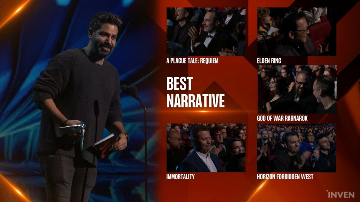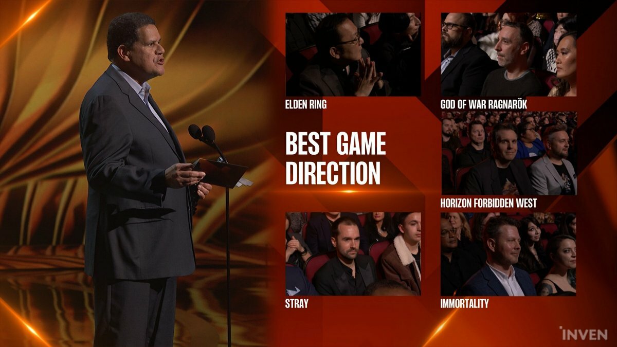 플레이그 테일: 레퀴엠, 엘든 링, 갓 오브 워 라그나로크, 호라이즌 포비든 웨스트, 스트레이, 제노블레이드 크로니클스3 등 후보에 오른 작품들의 OST가 오케스트라 연주 팀을 통해 펼쳐진 이후 수상작이 발표되어 분위기는 한층 뜨거웠다. 특히 지난해 올해의 게임을 수상한 잇 테이크 투의 요제프 파레스가 직접 시상에 나서기도 했다. 또한, 호명과 함께 깜짝 놀란 미야자키 히데타카 대표는 현장의 관객, 개발자들과 인사를 나누며 크게 기뻐하는 모습을 보였다.