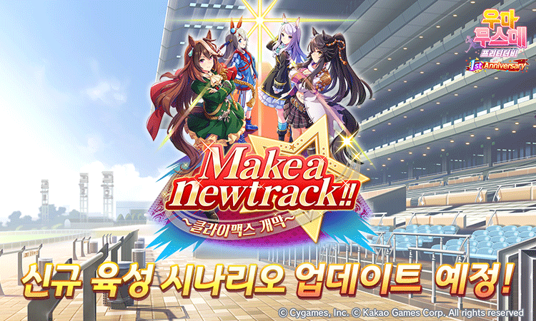 예약 페이지에서는 6월 15일, 1주년 업데이트에 대한 신규 시나리오 타이틀 이미지와 각종 편의성 개선 업데이트, 최대 120회 무료 뽑기, 신규 우마무스메 키타산 블랙과 사토노 다이아몬드, 마치카네 탄호이저의 이미지 배너도 볼 수 있다.