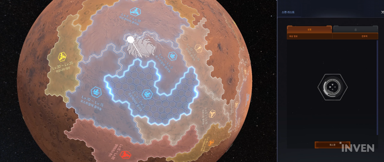 대망의 전투는 PvE와 PvP로 나눠집니다. PvE는 레벨별로 구분되는 화성의 여러 지역 중 원하는 곳을 스캔한 뒤 발견되는 임무를 수행하게 됩니다. 주로 제한 시간 동안 몰려오는 외계 생명체와 메크를 상대로 기지를 방어하는 방식이었는데요. 저레벨 구간에선 몰려드는 적들의 수준이 낮아 별도로 조작하지 않아도 무난하게 막을 수 있을 정도로 쉬운 편이었습니다.
