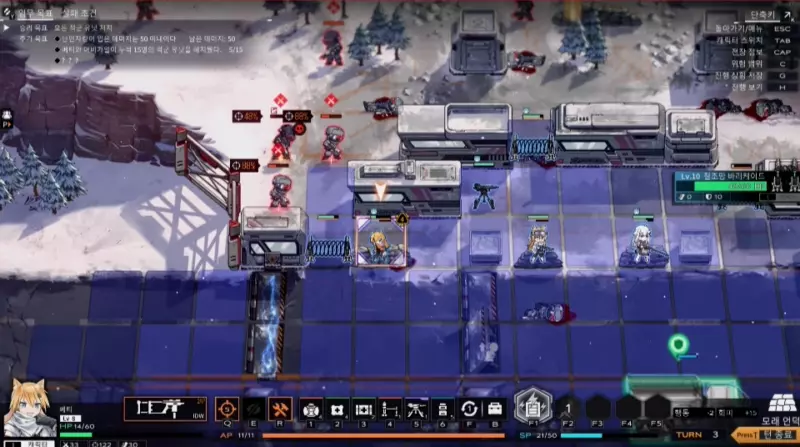 이렇듯 미션을 플레이하다보면 루련군과는 대체 어떻게 정면에서 싸워볼 수 있을까 의문이 드는 구간이 생긴다. SRPG가 소수의 적으로 다수의 적에 전술전략으로 맞서는 묘미가 있다지만, ‘역붕괴’는 그게 불가능할 정도로 초반부터 꽤 성가신 적들이 다수 등장한다. 물론 이를 잠입으로 하나하나 신중하게 풀어나가는 미션 위주로 진행하니 설득력이 없는 건 아니지만, 알파테스트 때는 아예 한 번 실수하면 그야말로 끝일 정도로 난도가 높았다. 조금 과장하자면, 갑자기 부쩍 어려워진 탓에 손을 놓고 말았던 소녀전선 이벤트들이 떠오른다고 할까.