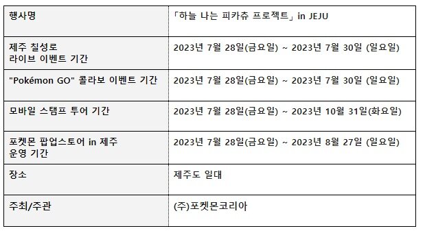 이번 행사와 관련된 자세한 사항은 ‘하늘 나는 피카츄 프로젝트’ in JEJU 공식 사이트 및 포켓몬코리아 공식 SNS에서 순차적으로 공개될 예정이다.