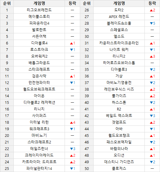 ◎ 분위기 반전 노리는 ‘디아블로4’, 한 계단 순위 상승