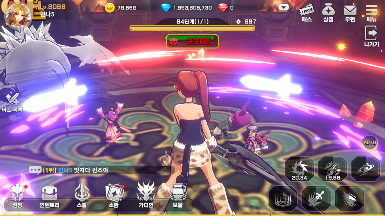 Q. 숫자 단위를 바꿔서 성장 체감을 주는데, 동시에 적의 최대 체력도 크게 늘어서 체감이 되지 않는 경우도 많다. 퀸즈나이츠는 어떤가?