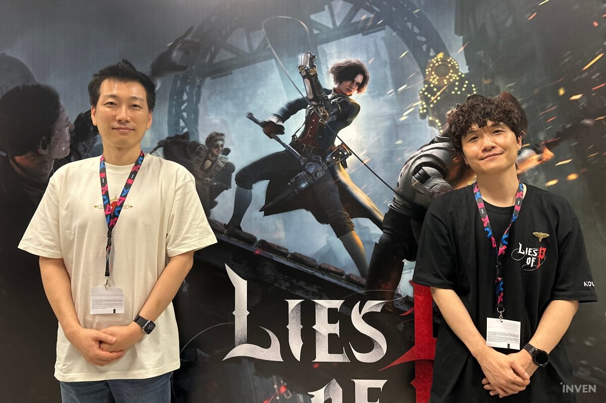 ‘P의 거짓’을 개발한 박성준 라운드8 스튜디오장과 최지원 개발총괄 PD가 좋은 기억을 갖고서 다시 게임스컴에 왔다. 현재 ‘P의 거짓’은 게임의 완성을 뜻하는 ‘골드행’ 단계이고, 9월 19일 정식 출시를 앞두고 있다. 최지원 PD는 출시의 설렘보다는 진짜 성적표를 받게 될 것에 마음이 무거운 모습이었다.