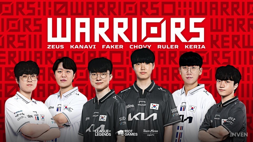 라이엇 게임즈가 제19회 항저우 아시안게임 대한민국 e스포츠 리그 오브 레전드 국가대표(이하 대한민국 LoL 국가대표)의 출전을 응원하기 위해 기획된 ‘워리어즈(WARRIORS)’ 브랜드의 소개 영상을 12일 공개했다. 본 영상 속에는 한국적인 의상과 공간 표현 속 태극마크를 달고 등장하는 대한민국 LoL 국가대표와 이들을 응원하는 또 다른 전사, 워리어즈의 모습이 담겼다.