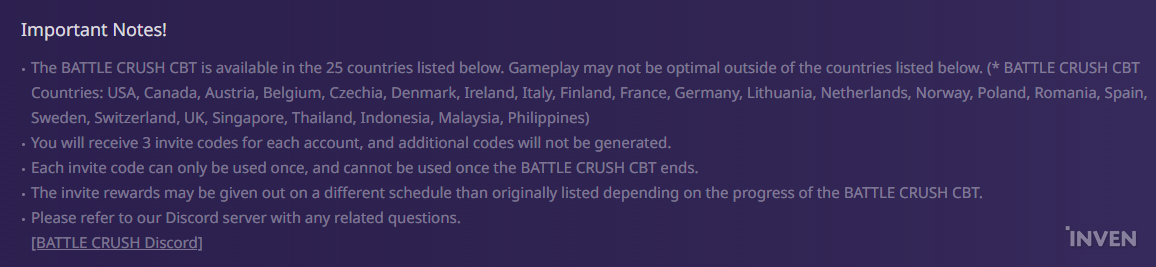 엔씨소프트가 개발 중인 신작 ‘배틀크러쉬’ CBT를 10월 23일부터 30일까지 진행한다. 다만, 우리나라가 1차 주요 CBT 지원 국가에서 빠진 것으로 나타났다. 엔씨는 25개 국가 이외의 지역에선 원활한 CBT가 어려울 수 있다고 전했는데, 25개 국가에 우리나라는 없었다.