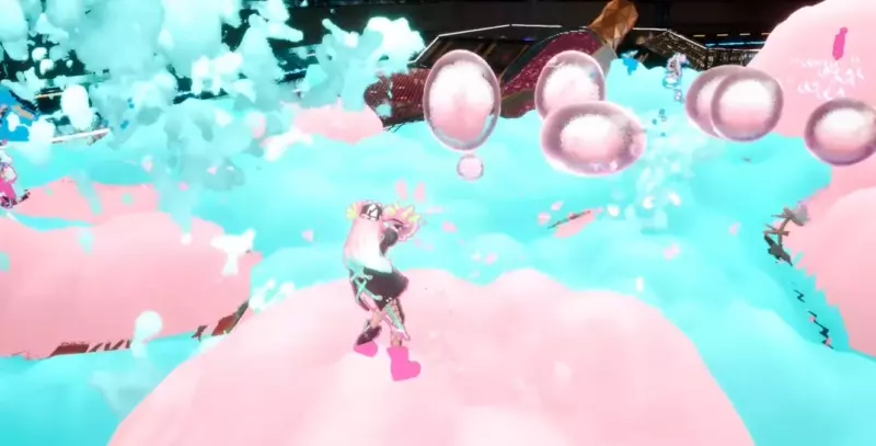 그래서 갑자기 벽과 거품 동산이 세워지고 여기저기 사람 혹은 지형이 펑펑 터지는 일이 게임 내내 이어진다. 거기에 플레이어들의 스킬이 조합되면 전장에서 정신을 차리기가 쉽지 않다. 거품 동산이 일어나더니 거품탄이 쏟아지고, 순식간에 거품덩어리가 되니까 서핑 보드로 후려치는 사람들이 나타난다. 똑같이 내가 그렇게 해줄 수 있다. 그 과정이 계속해서, 전장 내내 감돈다.