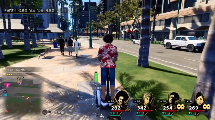 이번 시연 빌드에서는 전투 이외에도 가라오케, 크레이지 딜리버리, 레저 체험, 수상한 사람 촬영하기, 알로하 해변 산책 등 다양한 즐길 거리가 포함됐다. 크레이지 딜리버리는 전작의 ‘서바이벌 캔 줍기’를 한층 더 강화한 새로운 미니게임으로, 캔 대신 도로 위의 음식들을 획득해서 음식을 주문한 고객들에게 배달하는 콘텐츠다. 단순히 길을 따라 달리는 것 외에도 점프로 테크닉 점수를 획득하거나 정확한 지점에서 브레이크를 걸어 음식을 전달하는 등, 여러가지 컨트롤 요소가 포함된 것이 특징이다.