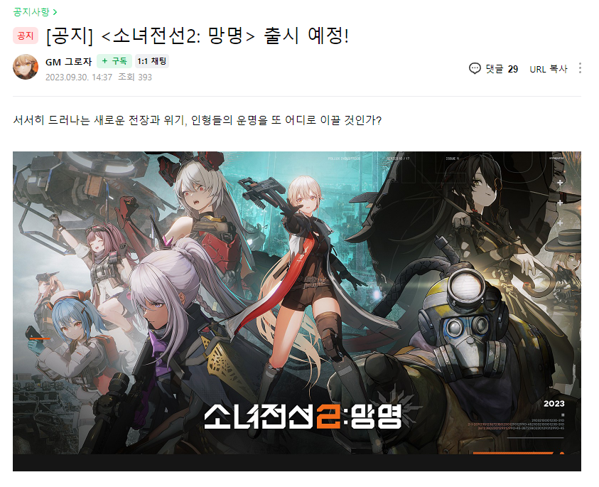 소녀전선2가 지난 9월 30일, 공식 카페 공지를 통해 국내 출시를 예고했다.