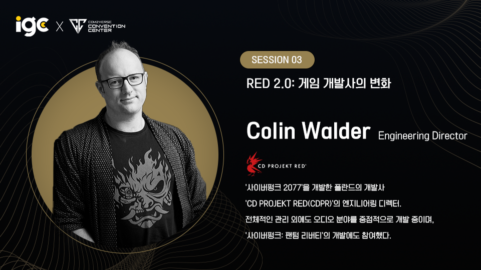 10월 13일 개최 예정인 ‘IGC(Inven Game Conference) 2023’에서 출시 후 3년만에 대대적 변화를 가해 극적인 부활에 성공한 ‘사이버펑크 2077’의 개발사, CD PROJEKT RED(CDPR)의 엔지니어링 디렉터인 ‘콜린 월더(Colin Walder)’가 연단에 오른다.