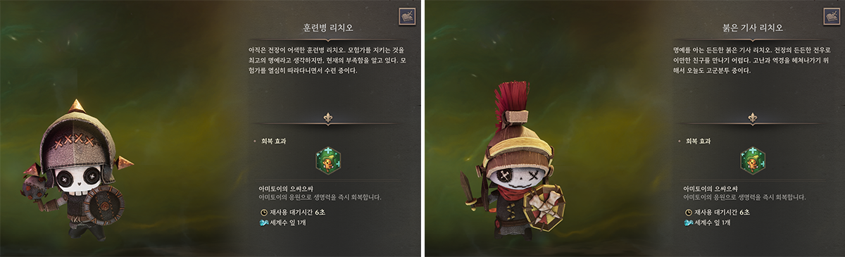먼저, 아미토이와 야성 변신에서 등급 개념을 삭제했습니다. 모든 아미토이와 야성 변신은 같은 등급이며, 동일한 성능을 가집니다. 야성 변신은 탈것의 대체인 만큼 이동 지형에 따라 능력이 발생하는 등 기능이 있지만, 능력치의 효율은 동일하게 체감되도록 설정했습니다. “인게임 보상”과 “유료 상품” 역시 마찬가지입니다. 등급과 성능이 같기 때문에 상품 구매의 선택 기준은 외형적 선호도에 두고 있습니다.아미토이와 야성 변신 모두 게임 플레이에서 기본 개체가 무료 지급되지만, 상품 중 선호하는 외형이 있다면 구매하실 수 있습니다.