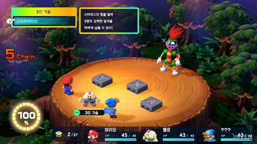 이렇게만 얘기하면 충분히 많이 변한 것 아니냐고 할 수도 있습니다. 하지만 실제로는 그렇지 않습니다. 앞서 언급한 것처럼 플레이 감각에 유의미한 변화를 줄 정도는 아니었기 때문입니다. 새로운 시스템이 추가됐다면 그 시스템이 반드시 필요하다거나 할 필요가 있습니다. 하지만 ‘슈퍼 마리오 RPG’는 딱히 그런 건 아니었습니다. 3인 기술이나 콤보 체인 시스템 모두 없어도 무방하죠. 리메이크만의 요소인 동시에 연출적인 측면에서 좀 더 강화된 게 사실이지만, 딱 그 정도에 머문다고 할 수 있습니다.